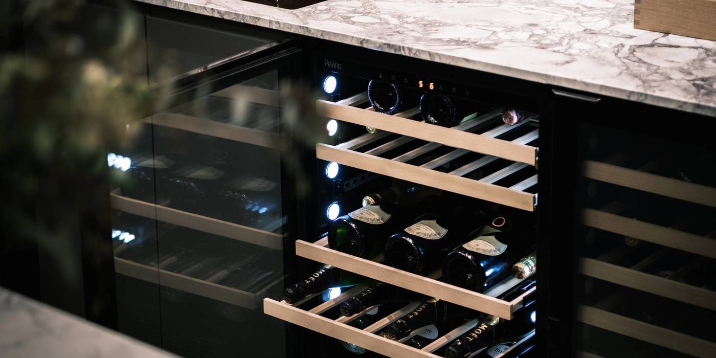 En vinlounge skabt med de elegante Pevino vinkøleskabe