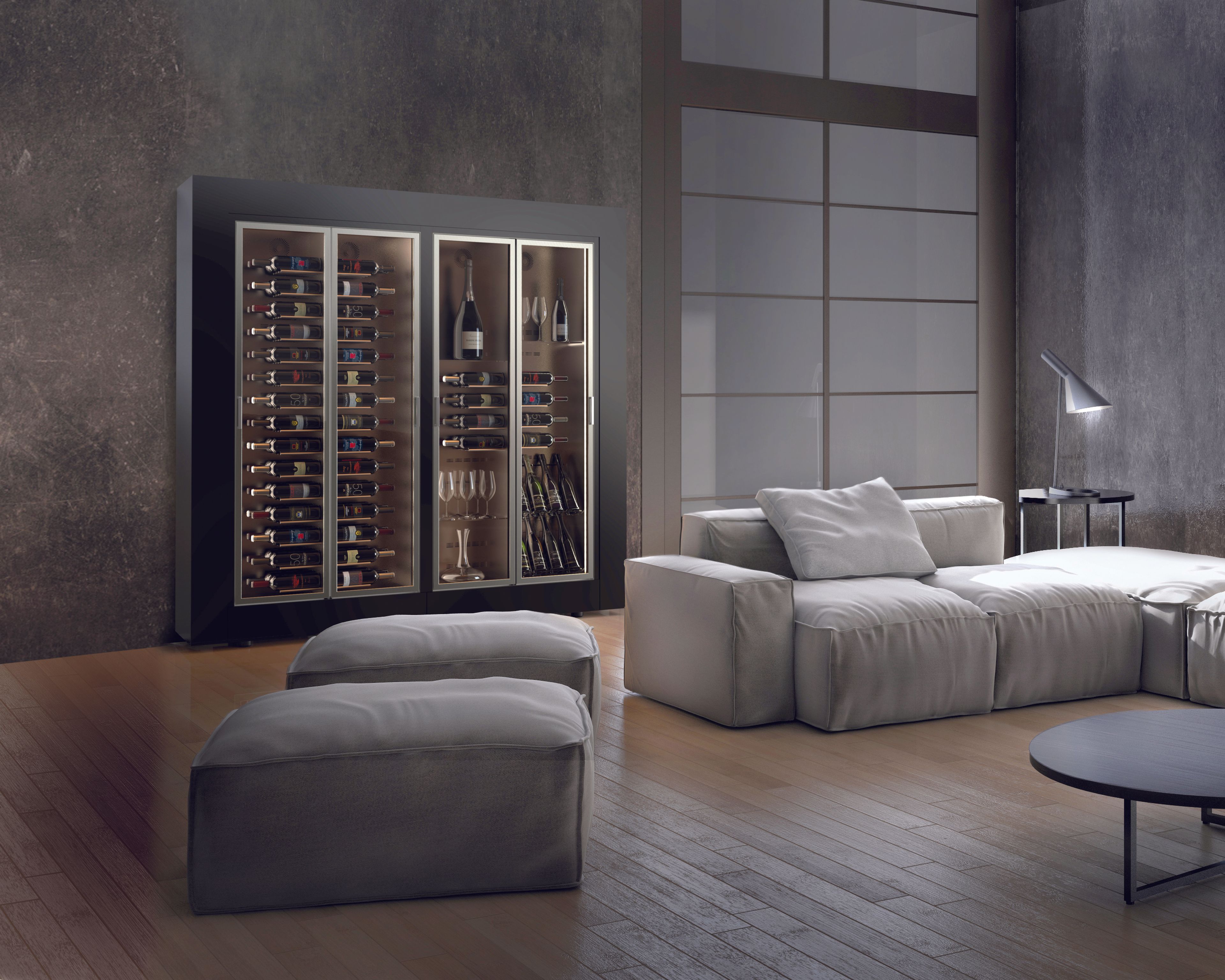 Kølesystemet er integreret i skabets centrale struktur. Alle flasker er placeret i samme afstand fra kuldekilden. Et Della Marta-patent, der repræsenterer en revolution inden for anvendt termodynamik.