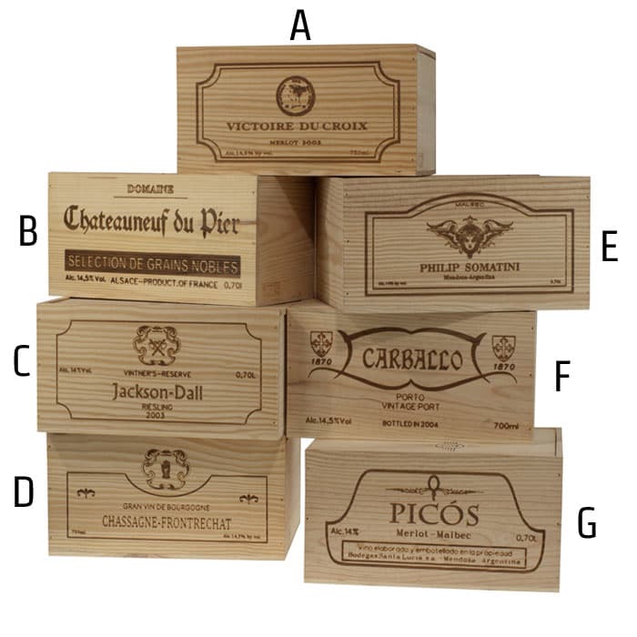 Opbevar og vis din vin elegant frem i denne vinkasse i træ med 6 flasker og et charmerende vinmarkslogo. Ideel til både gaver og personlige samlinger. Robust og stilfuld.