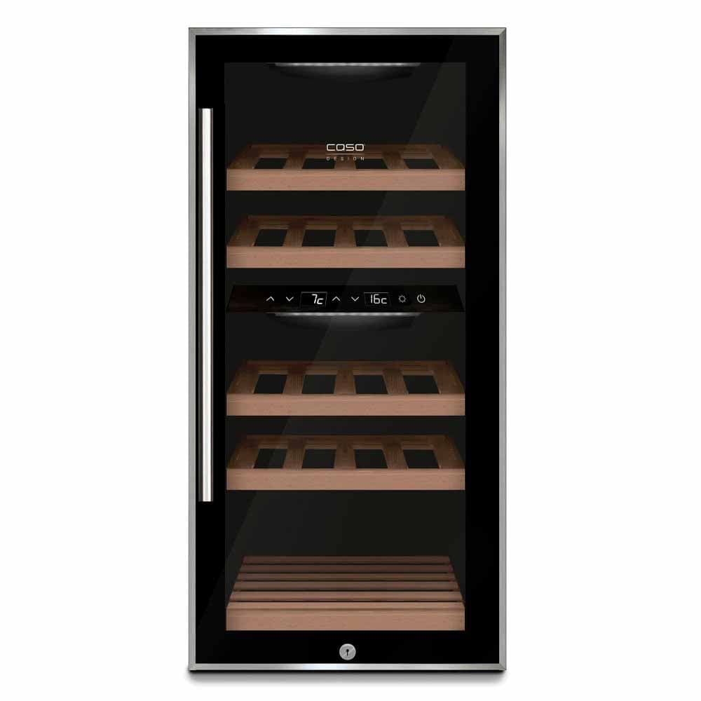 Forstærk din vinsamling med Caso WineComfort 24, med dobbelt kølezoner og UV-beskyttelse. Opbevarer op til 24 flasker.