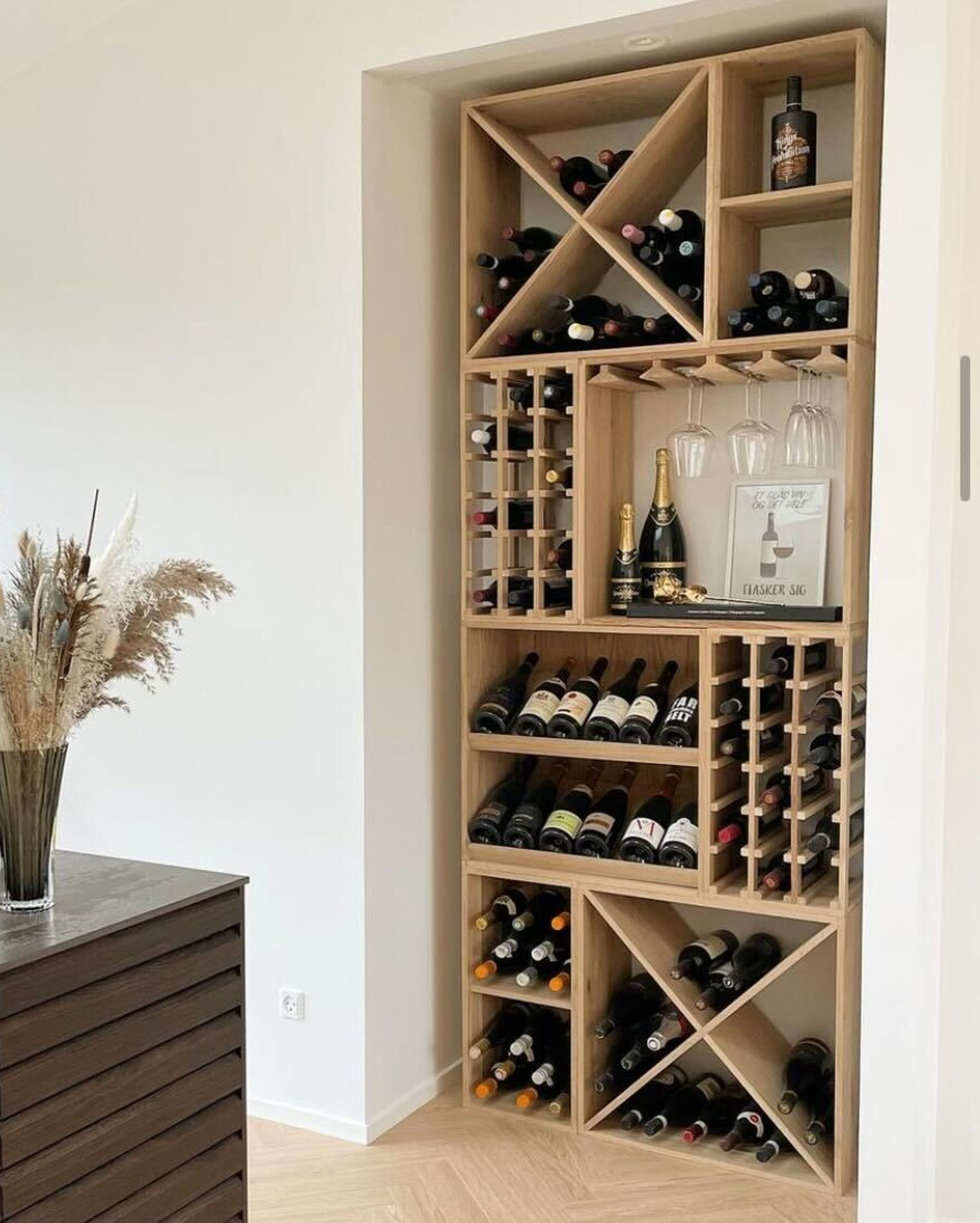 En sidste overvejelse du skal gøre dig er, hvilke vinflasker du typisk skal opbevare? Nogle af vores moduler og modeller er specifikt indrettet til fx champagne flasker og andre til Bordeaux flasker.