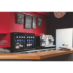 Doseringsanlægget opererer med 8 åbne flasker og 6 i reserve ved perfekt serveringstemperatur.