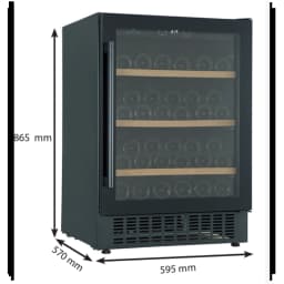 Med denne helt nye model får du et lækkert enkeltzone vinkøleskab (5-20°C), der har en sort glasdør med UV-frit glas, og plads til 54 flasker af Bordeaux-typen.