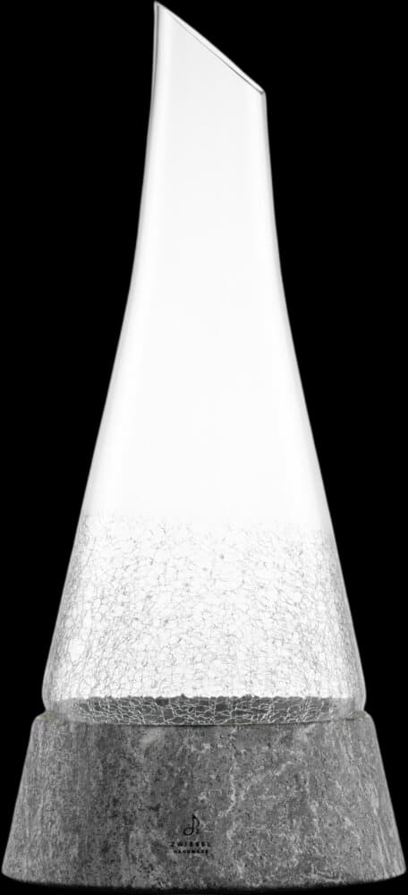 Symbiosis kombinerer naturens arkaiske og filigrane aspekter med fint krystalglas og udvalgte sten. Dekanteren er dækket af den fineste krakelering, hvilket giver indtryk af stor skrøbelighed. I kontrast til den naturlige, uberørte stenbase har denne symbiose en helt særlig visuel appel. Stenbunden er også kendetegnet ved sin praktiske kølefunktion, som især er en fordel for hvidvinselskere: Ved at afkøle den i køleskabet eller fryseren før brug sikrer den, at din hvidvin altid har den ideelle drikketemperatur. Dekanteren og basen samles i deres præcist afstemte former. I Symbiosis smelter glasmagerens traditionelle håndværk sammen med stenhuggerens.