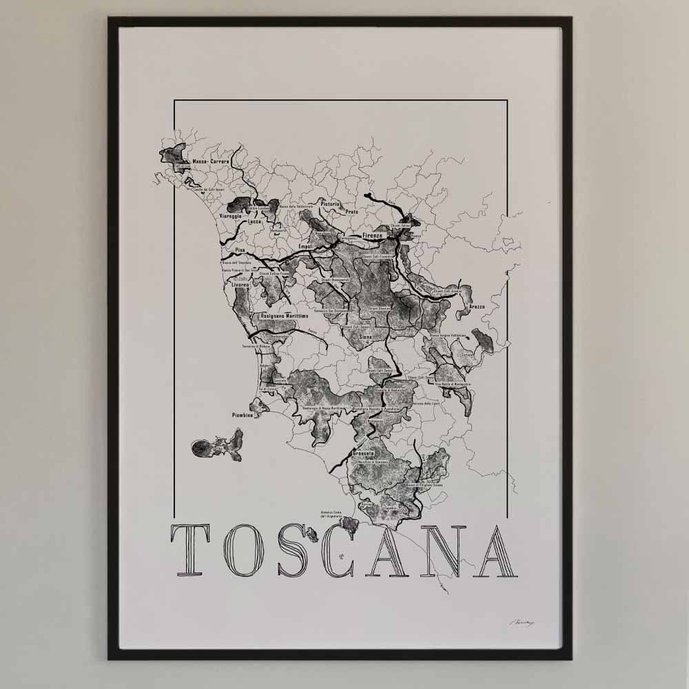 Flot kunstplakat med motiv af den italienske vinregion Toscana.