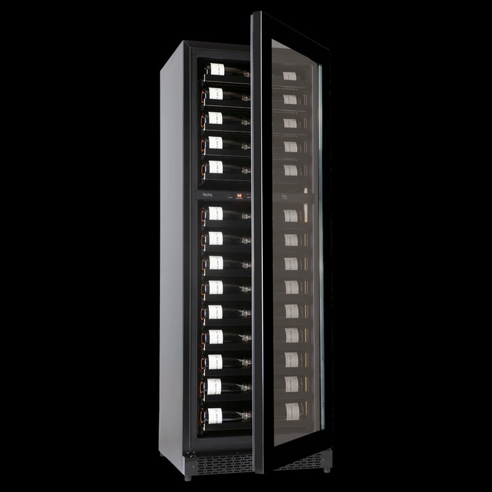 Med denne helt nye Pevino Imperial Eco model får du et lækkert 2 zoners vinkøleskab (5-16°C og 7-18°C) med sort front, glasdør og plads til 96 flasker.
