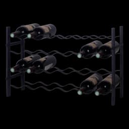 Sort vinreol i metal, der kan stables, til 24 flasker.