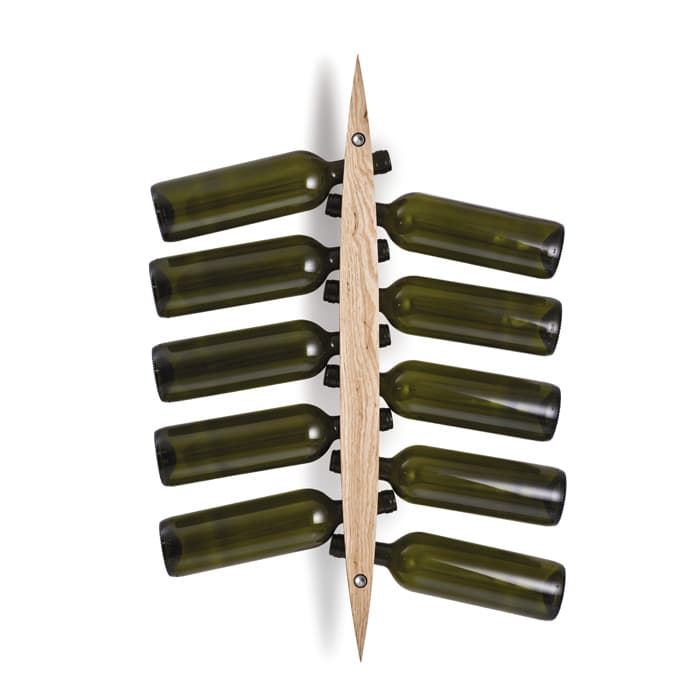 Kombiner stil og funktionalitet med dette vægmonterede stativ i asketræ, der er perfekt til sikker udstilling af op til 10 vinflasker.
