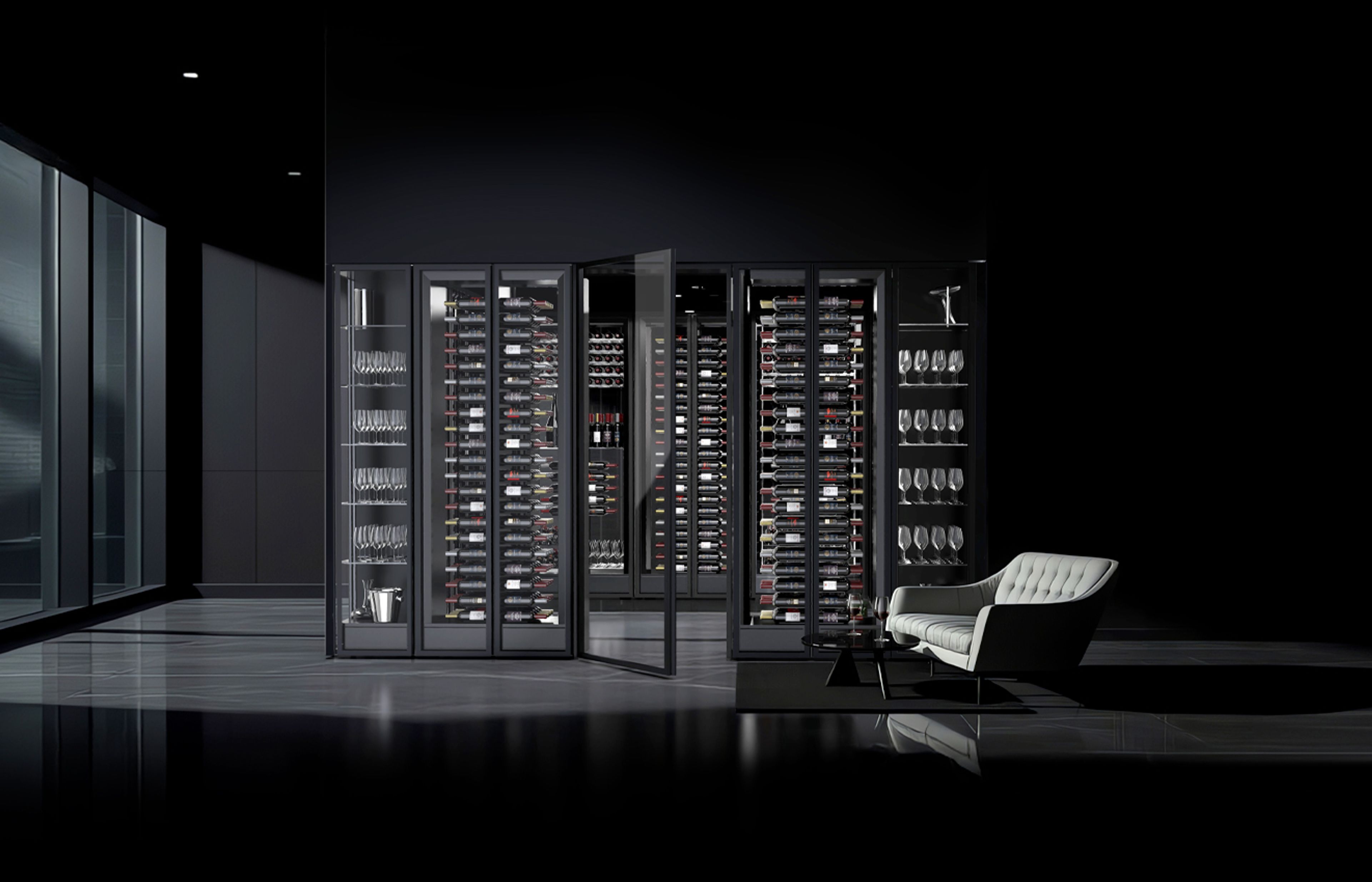 Quadro Vino. Det væghængte vinkøleskab er innovativt både i koncept og design, og kan med omtanke opbevare og fremvise den fineste vin. Visningsmulighederne er mange og udførelsen er unik.