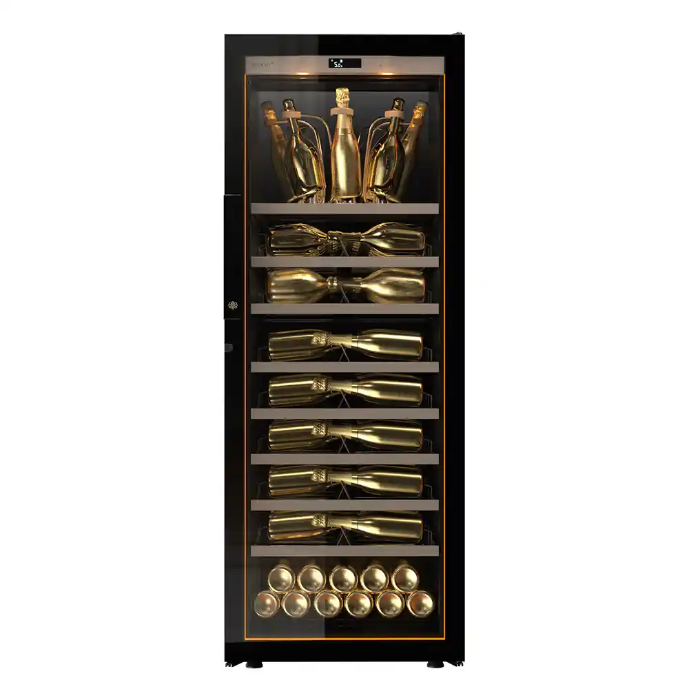 EuroCaves Champagne Cabinet er en specialdesignet vinkøler dedikeret til opbevaring og servering af champagne. Med en enkelt temperaturzone, justerbar mellem 5°C og 12°C, sikrer skabet, at dine champagner altid er ved den ideelle serveringstemperatur.