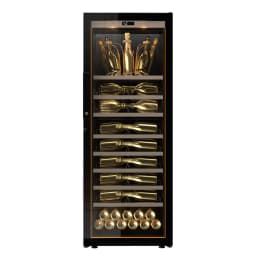 Dette vinkøleskab er lavet til at stå frit i al sin pomp og pragt og kan opbevare op til 91 champagneflasker i en enkelt temperaturzone (5-12 grader °C), hvilket er det optimale temperaturinterval for både langtidsopbevaring samt servering af champagne. Udover det lækre design og den flotte belysning, har vinkøleskabet også et meget lavt støjniveau på kun 37 dB, hvilket gør det oplagt til en fremtrædende plads i stuen, spisestuen, køkkenet eller vinrummet.