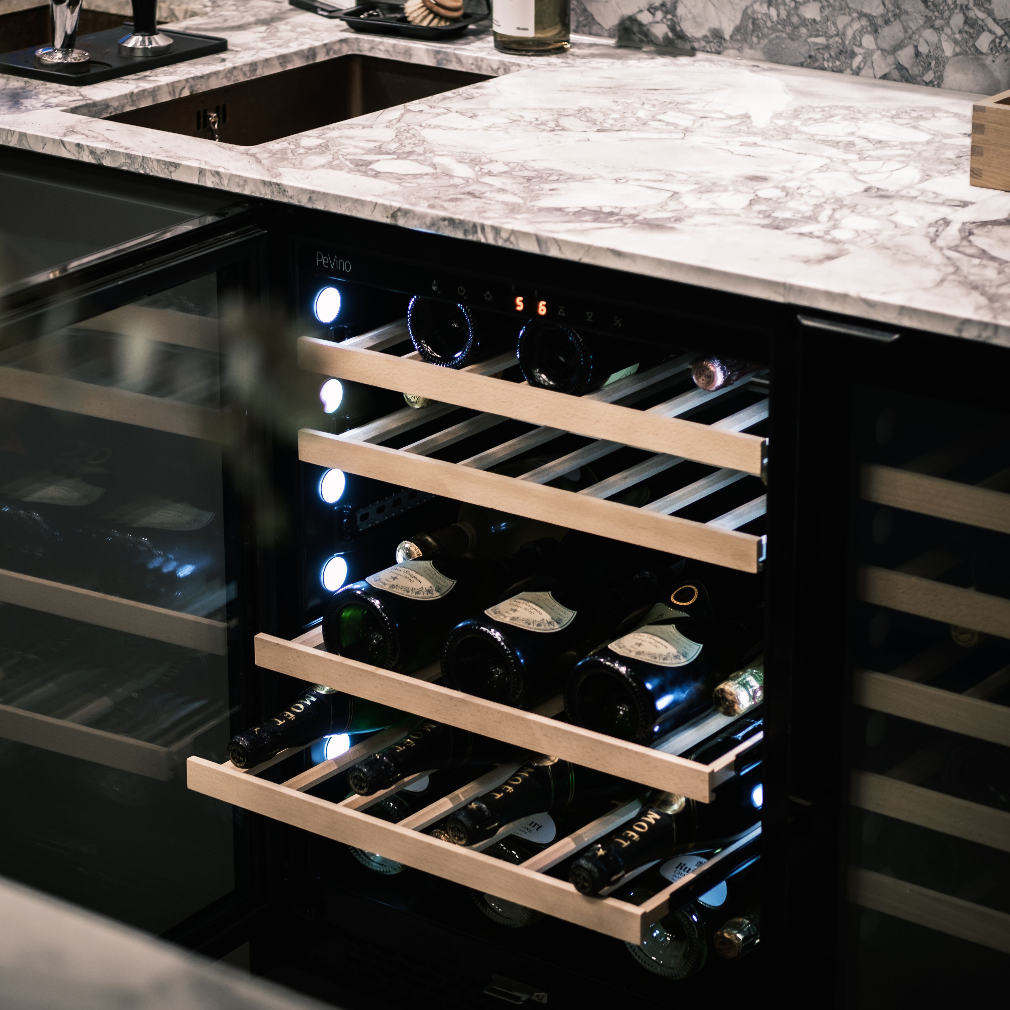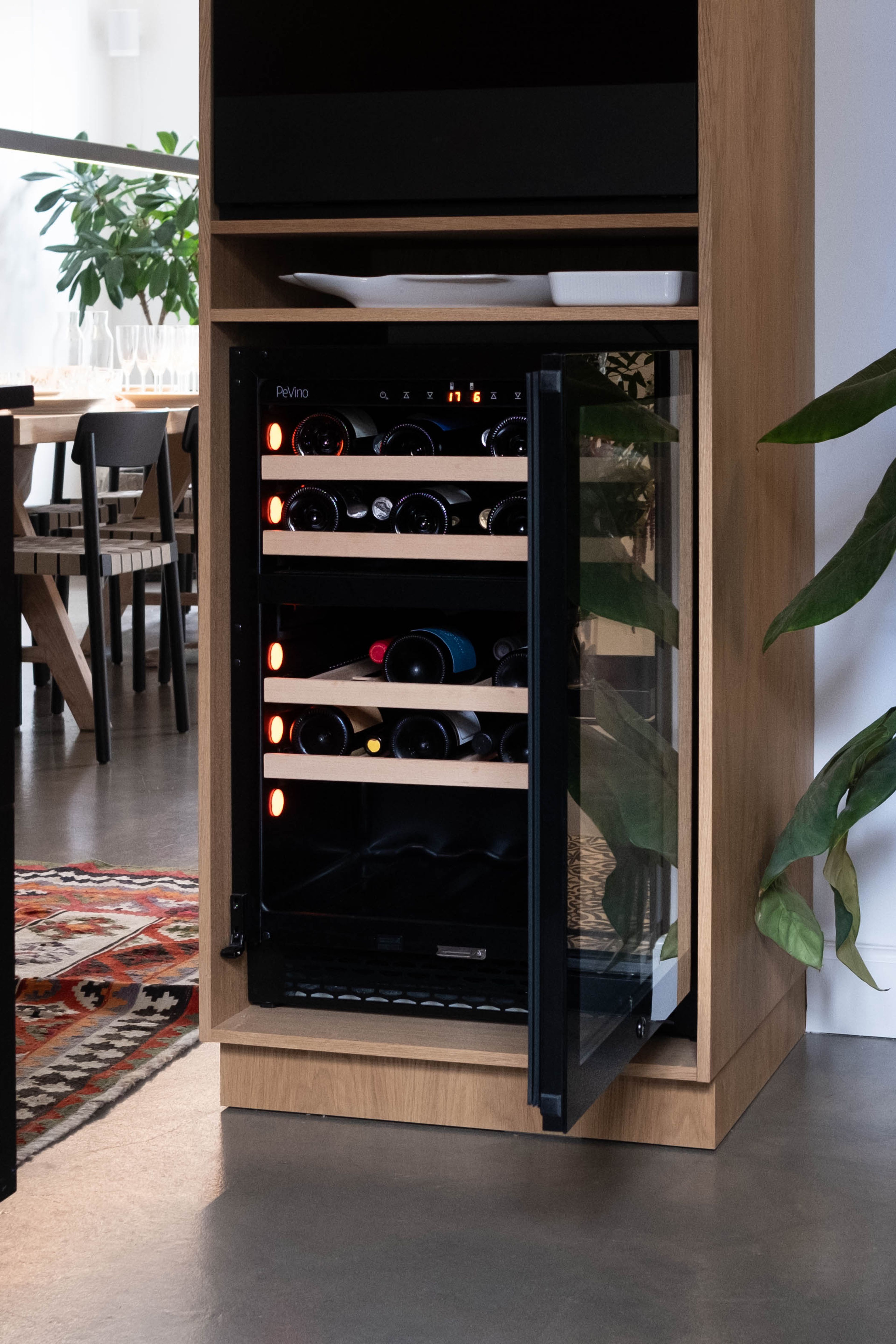 Pevino Noble giver dig det mest essentielle i et vinkøleskab: Praktiske hylder, lækker belysning og et lavt støjniveau.