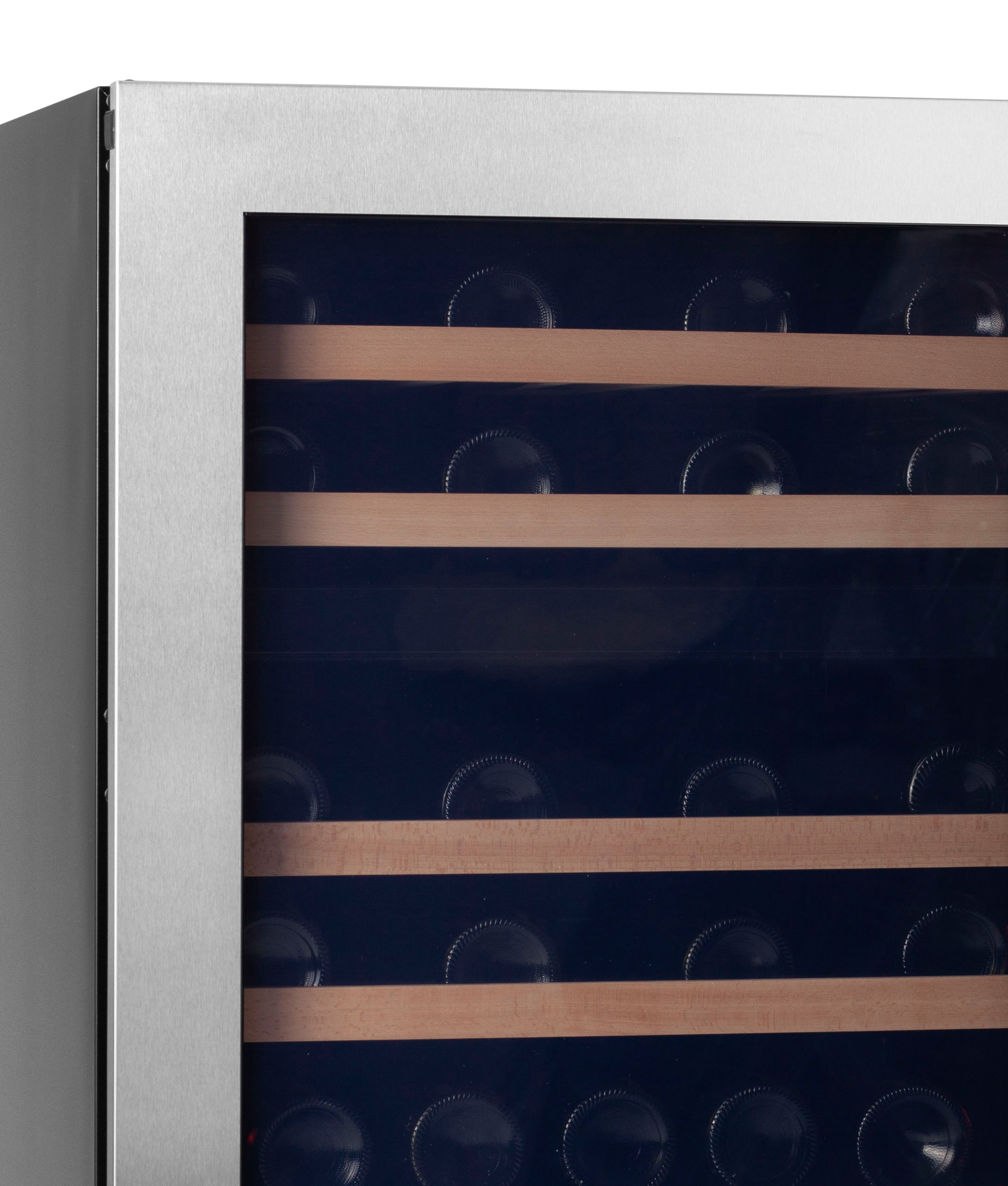 - Mulighed for forskellige hyldeforkanter så vinkøleskabet passer ind i dit hjem. Vælg mellem træ, sort stål eller rustfristål.