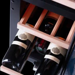 - Mulighed for forskellige hyldeforkanter så vinkøleskabet passer ind i dit hjem. Vælg mellem træ, sort stål eller rustfrit stål.