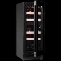 Med denne helt nye model får du et lækkert og kompakt tozonet vinkøleskab (5-12 / 10-20°C), der har en sort glasdør med energieffektivt glas, og plads til 17 flasker af Bordeaux-typen.