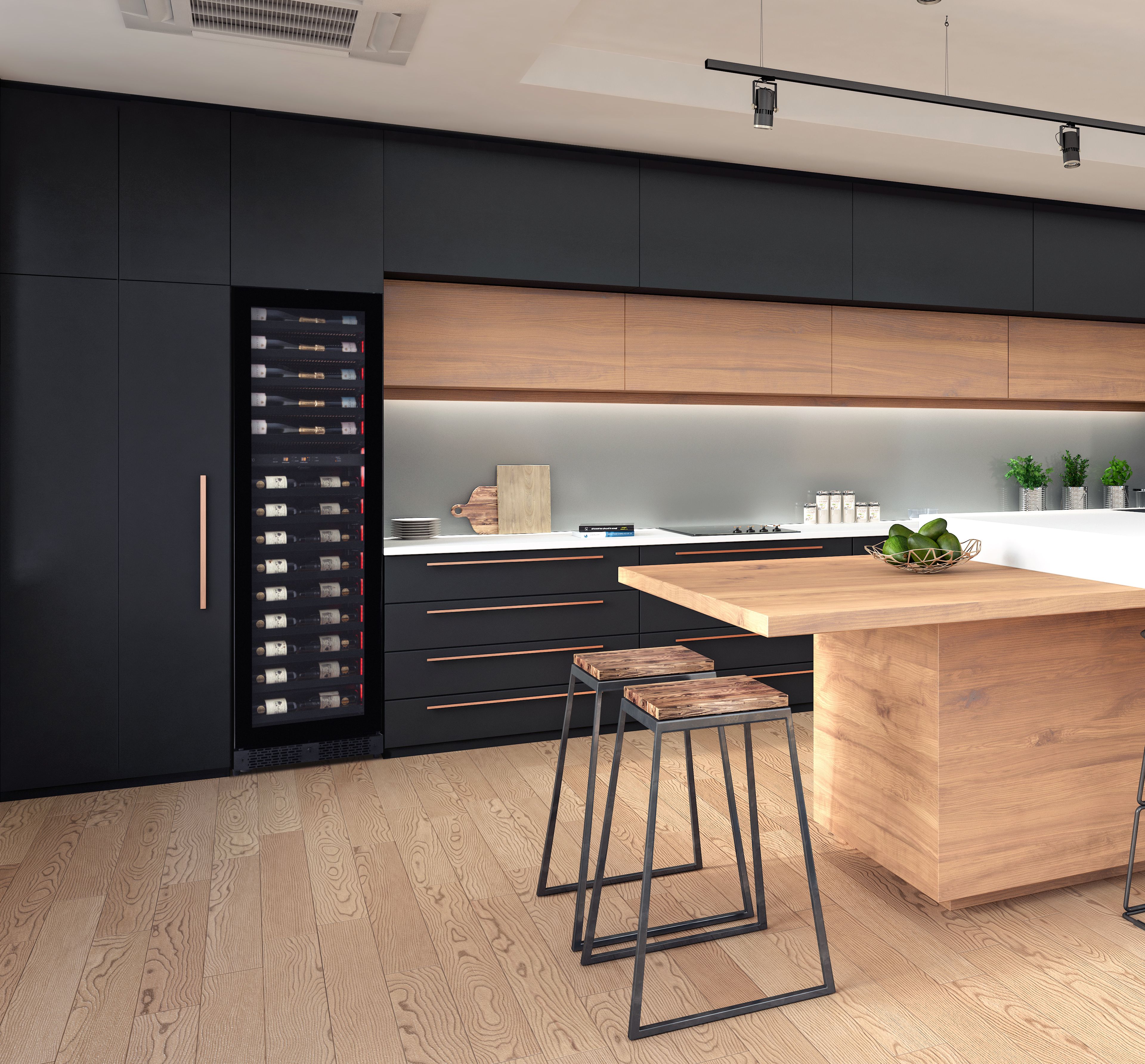 Vinkøleskabet er visuelt imponerende og meget praktisk. Det bruger markedets bedste kompressor og blæsere, som gør det til det mest pålidelige og lydsvage (35dB) på markedet. Den indbyggede alarm holder øje med den indvendige temperatur.
