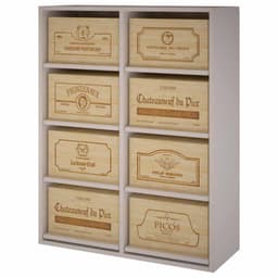 Elegant vinreol til 8 trækasser, tilgængelig i behandlet spansk fyrretræ, massiv eg eller sort, brun eller hvid-lakeret fyr. Opbevarer Bordeaux, Bourgogne og Champagne-flasker. Dimensioner: 82x32x105 cm. Leveres med justerbare fødder. Bemærk: Trækasser med vin medfølger ikke.