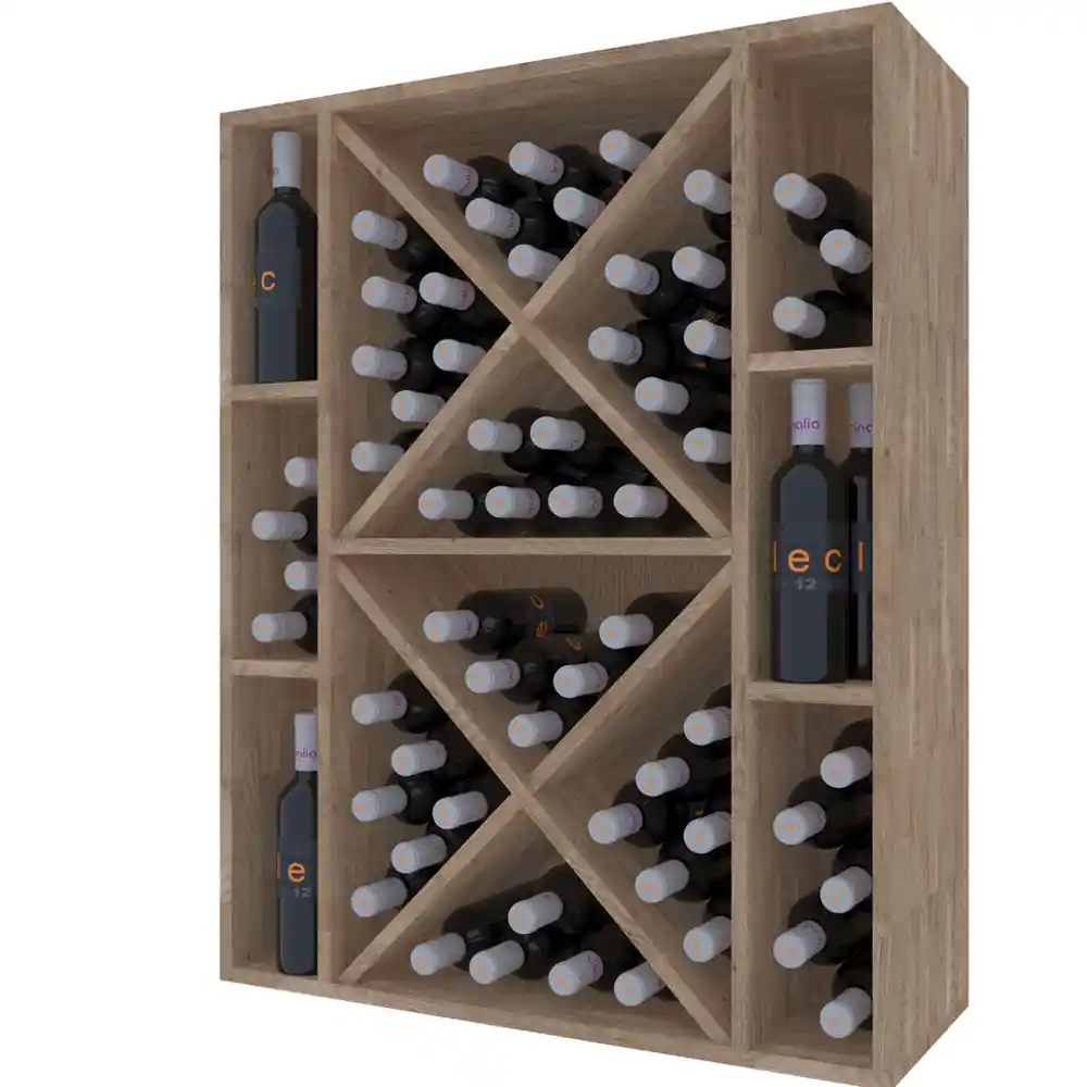 Opbevar op til 90 flasker med Winerex JUANA vinreol. Tilgængelig i behandlet fyrretræ, massivt egetræ og farvet fyrretræ. Denne stabelbare modul leveres samlet med justerbare fødder. Mål: 82x32x105 cm (BxDxH).