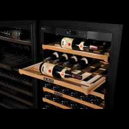 Forbedr La Première vinkølere med denne bøgetræsudtrækshylde, der tilbyder alsidig opbevaring til op til 72 flasker.