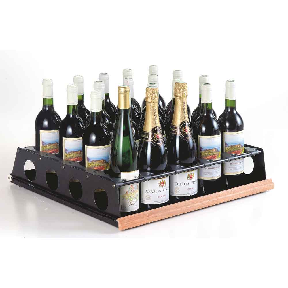 Dette er en helt særlig type hylde, der er beregnet til at være en serveringsskuffe, hvor du kan have op til 20 flasker stående oprejst i dit vinkøleskab.